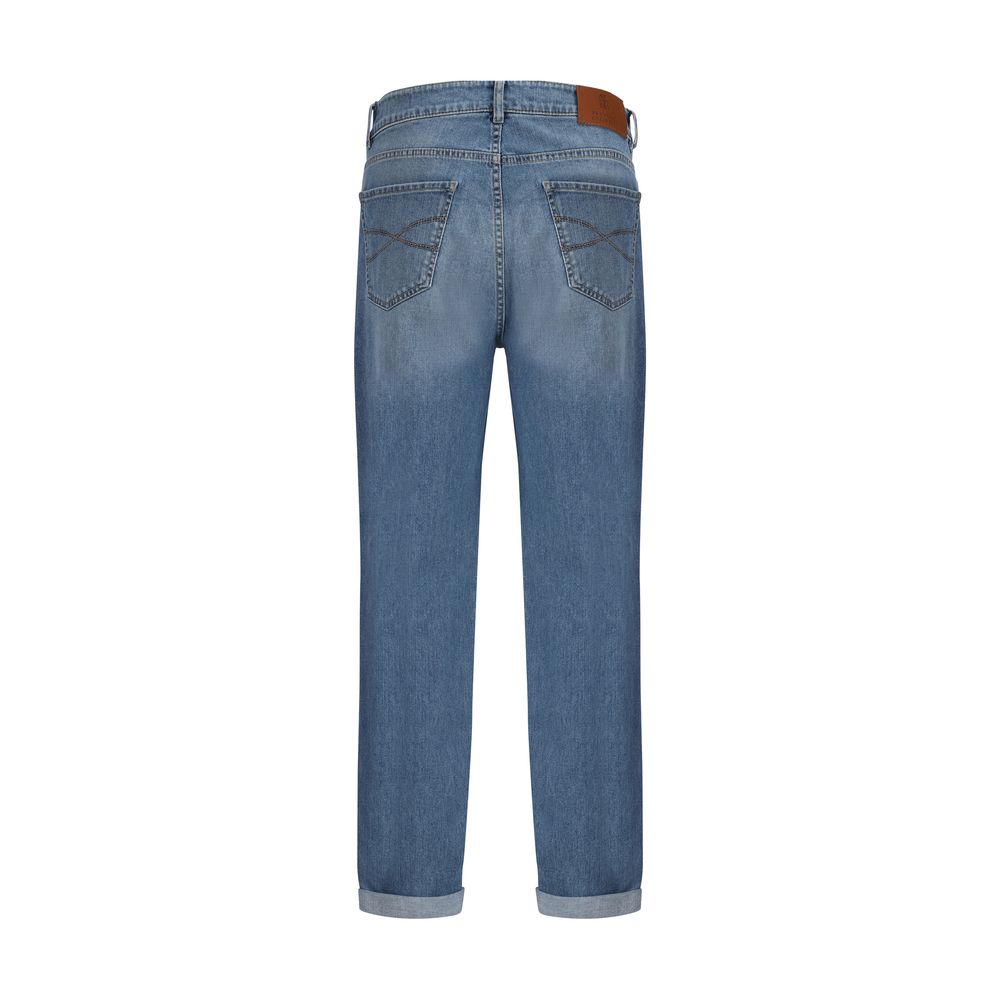 Los vaqueros de algodón de Brunello Cucinelli son una prenda versátil y sofisticada, con un estilo recto de cinco bolsillos que ofrece un ajuste clásico y cómodo. El cierre frontal con botones añade un toque de elegancia, mientras que las trabillas en la cintura permiten personalizar el look. El icónico parche de cuero con el estampado a presión característico de la marca en la espalda le da un toque distintivo. El dobladillo rematado completa el diseño, aportando un toque moderno y sofisticado.
