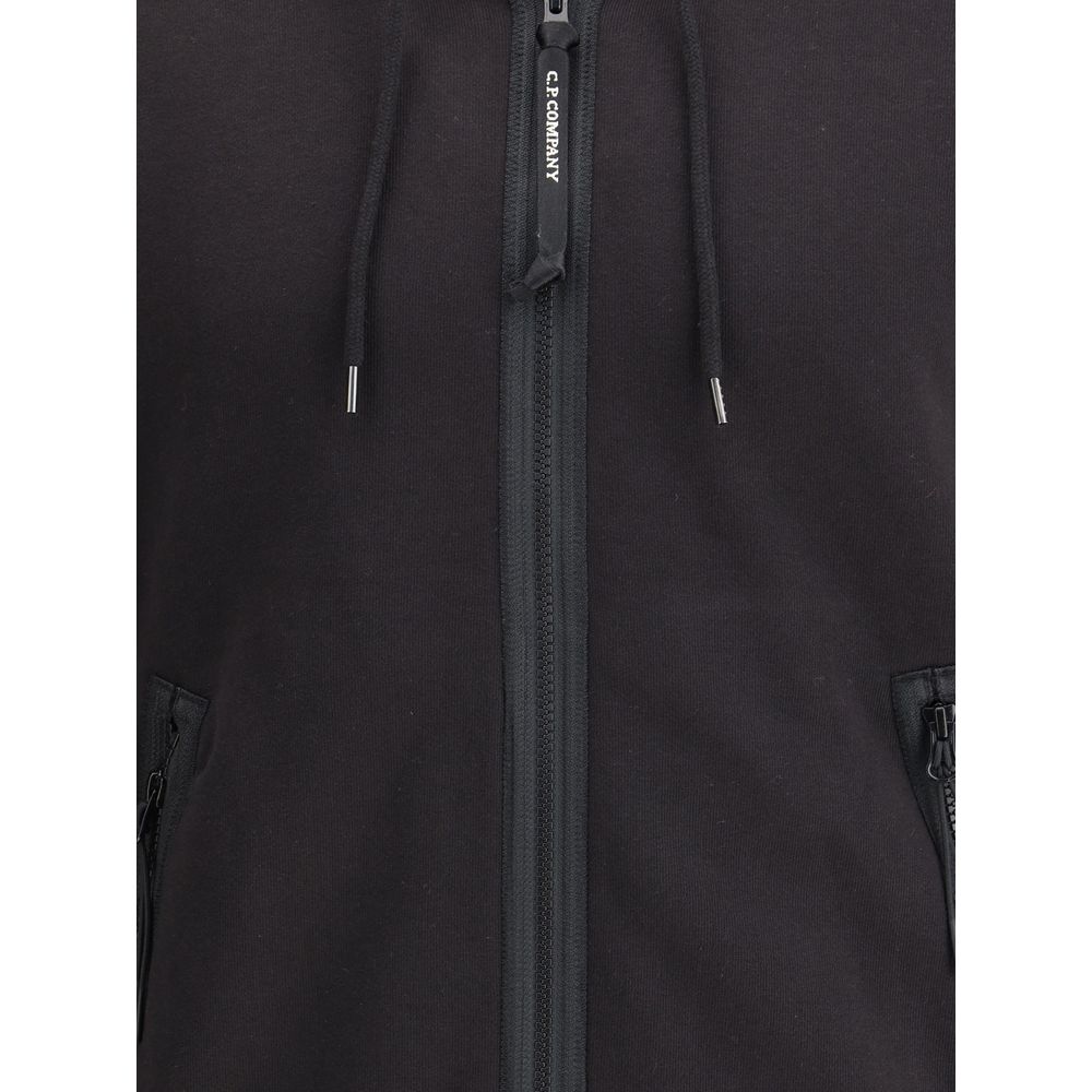 La sudadera con capucha de algodón de CP Company cuenta con capucha ajustable con cordón y cierre frontal con cremallera. Dos bolsillos laterales con cremallera y un bolsillo de ribete vertical con cremallera en la manga izquierda, adornado con el icónico aplique de lente. Los puños acanalados presentan aberturas verticales para los pulgares, mientras que el dobladillo acanalado completa su diseño funcional y distintivo.