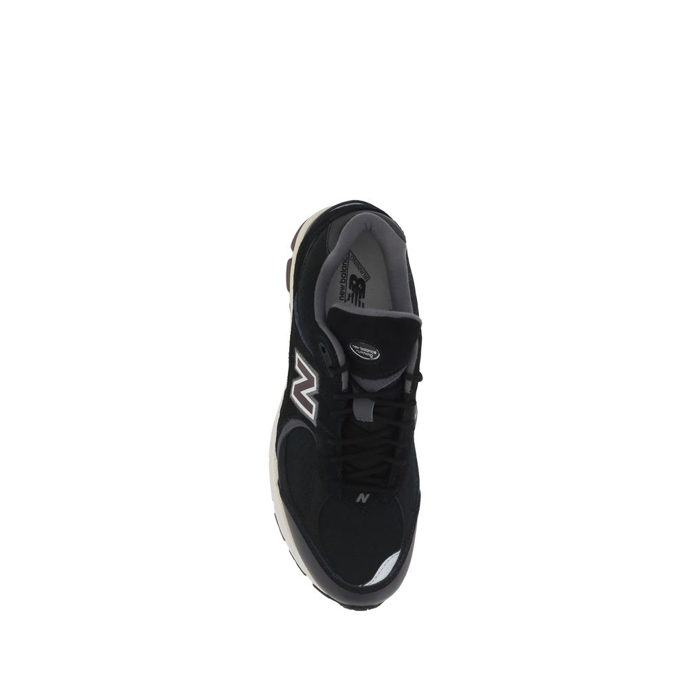 2002 Sneakers by New Balance, mesh upper with suede detailing, lace-up front closure, elongated toe on front, raised and reinforced rubber sole, contrasting iconic brand monogram on side panels, contrasting logoed front tab.