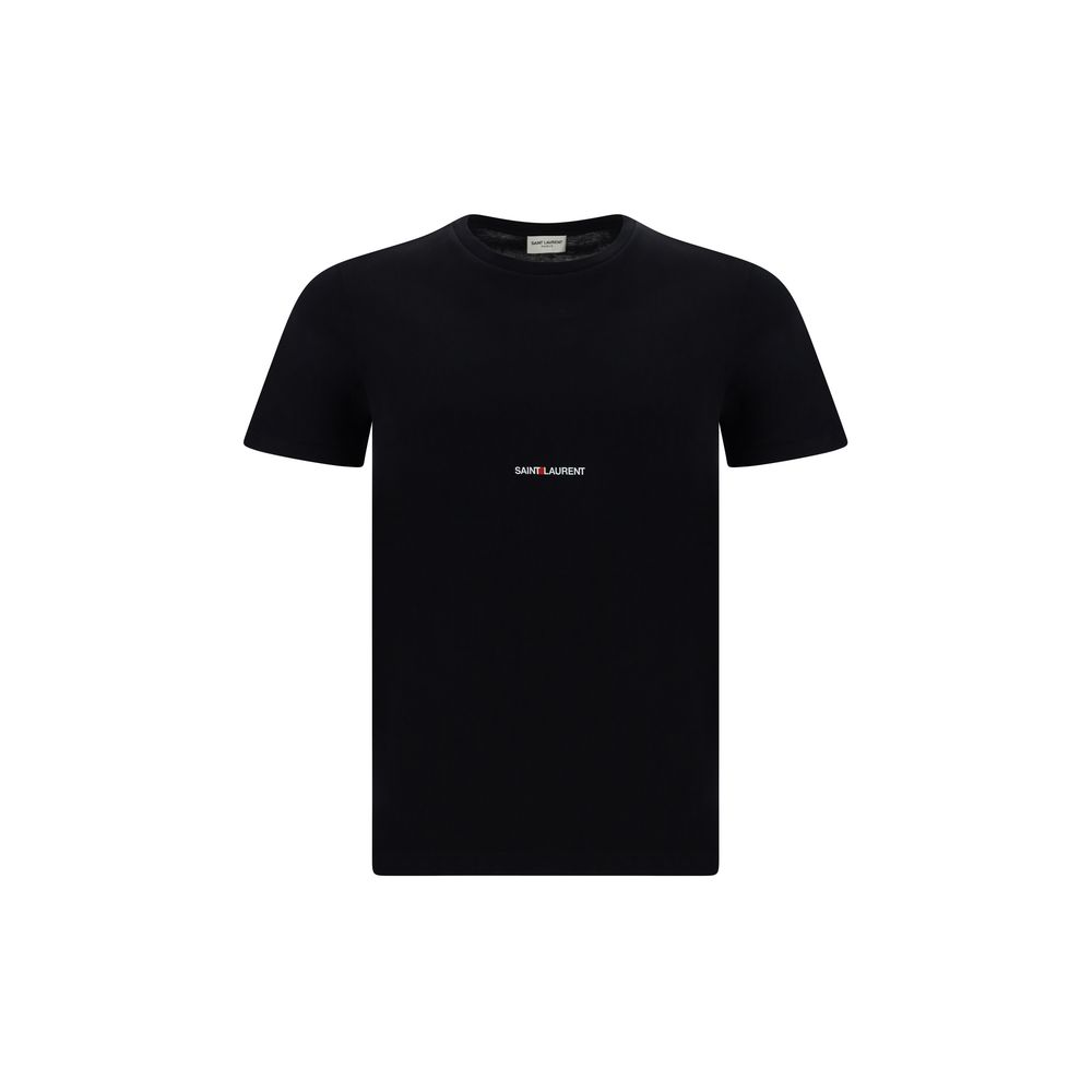 Camiseta de algodón de Saint Laurent, cuello redondo acanalado, monograma icónico de la marca en contraste en la parte delantera, patrón monocromático, corte regular.