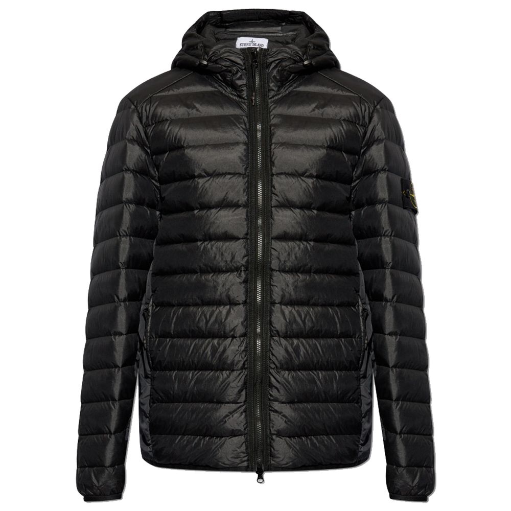 Chaqueta de plumón de nailon Stone Island con relleno de plumón de pato, cierre de cremallera de doble cursor, dos bolsillos laterales con cremallera y parche con el logo de la marca en la manga izquierda. Corte regular.