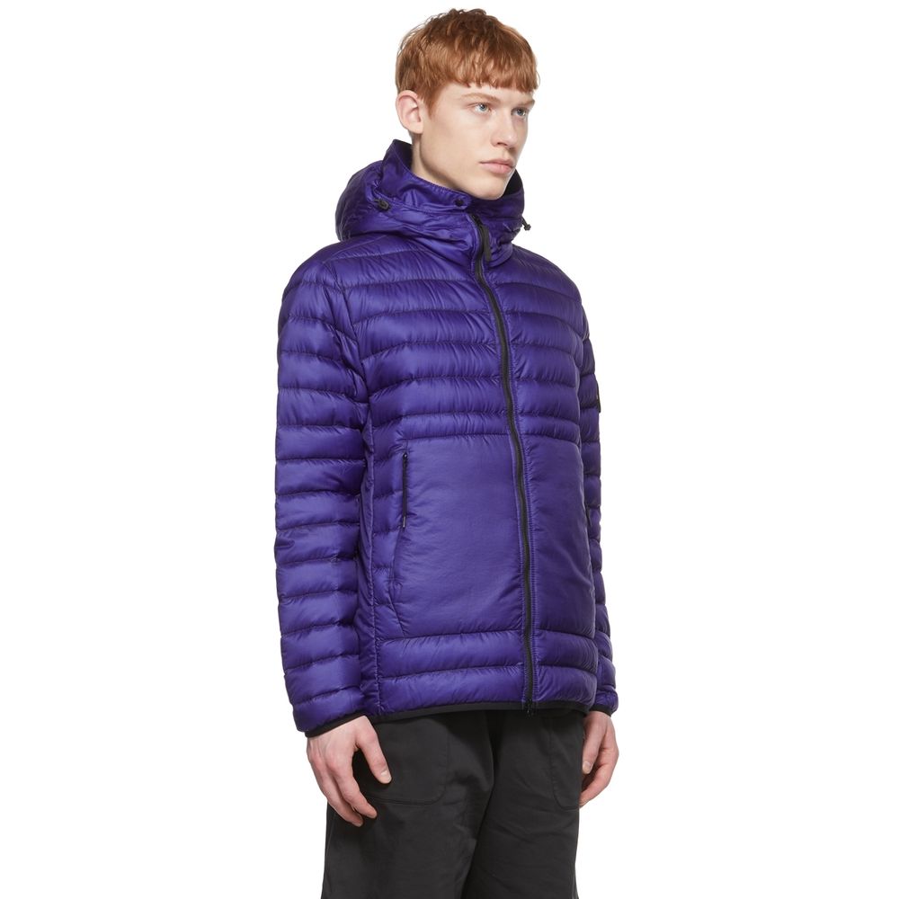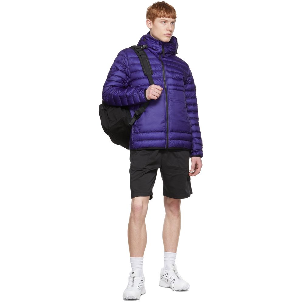 Chaqueta de plumón de nailon Stone Island con relleno de plumón de pato, cierre de cremallera de doble cursor, dos bolsillos laterales con cremallera y parche con el logo de la marca en la manga izquierda. Capucha con cordón.