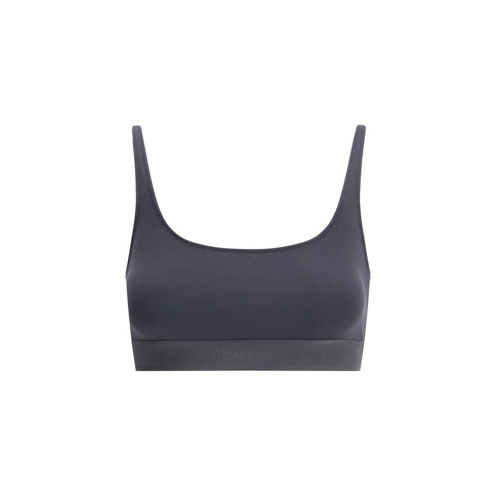 The modal bralette Top with jacquard logo is an essential garment with a minimal and sporty design. It features a round neckline at the front, thin straps and a U-neck at the back that enhance the feminine silhouette. The elasticated bottom band provides comfort and support, while the jacquard logo on the front adds a distinctive touch. The fit is short and fitted, perfect for wearing on its own or as a base under other garments.