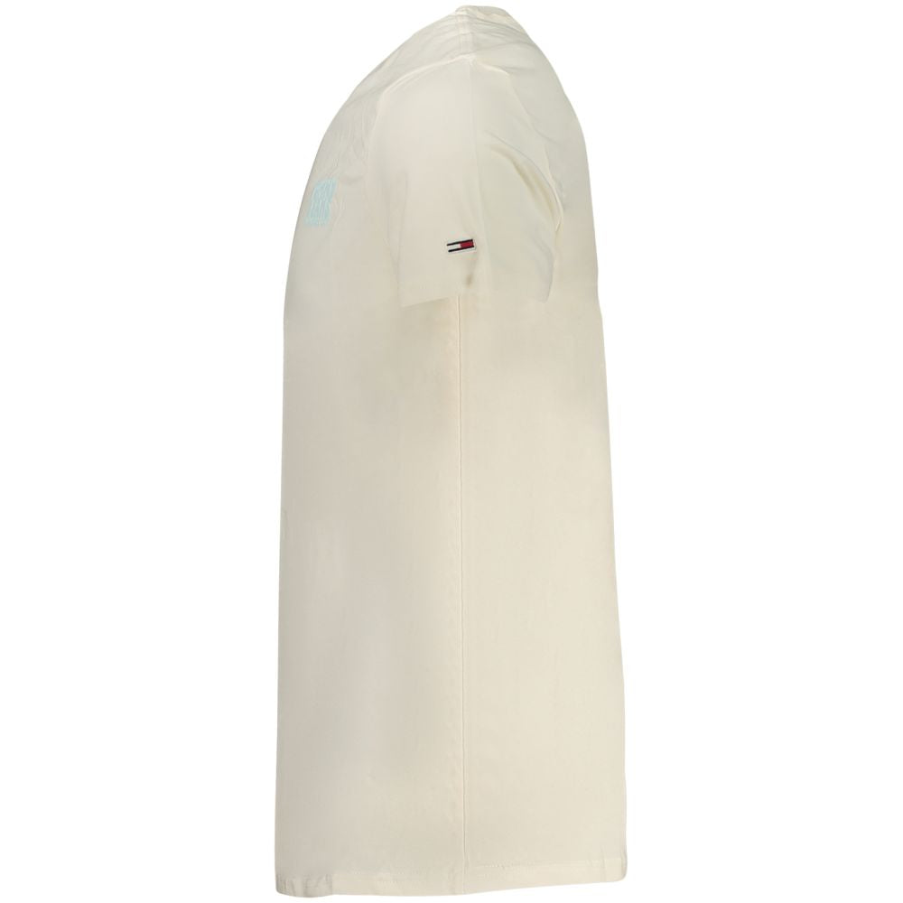 Define tu look informal con un toque clásico y contemporáneo, cortesía de Tommy Hilfiger. Esta elegante camiseta beige, confeccionada con un 95 % de algodón regenerativo, es un ejemplo de estilo desenfadado con sus mangas cortas y cuello redondo. El estampado llamativo y el icónico logotipo añaden un toque distintivo a tu repertorio informal. Perfecta para marcar tendencia en cuanto a moda sostenible dondequiera que vayas.