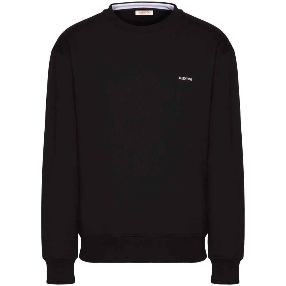 Sudadera de cuello redondo de algodón Valentino, estampado de Valentino en el pecho, ribete elástico acanalado, corte regular.