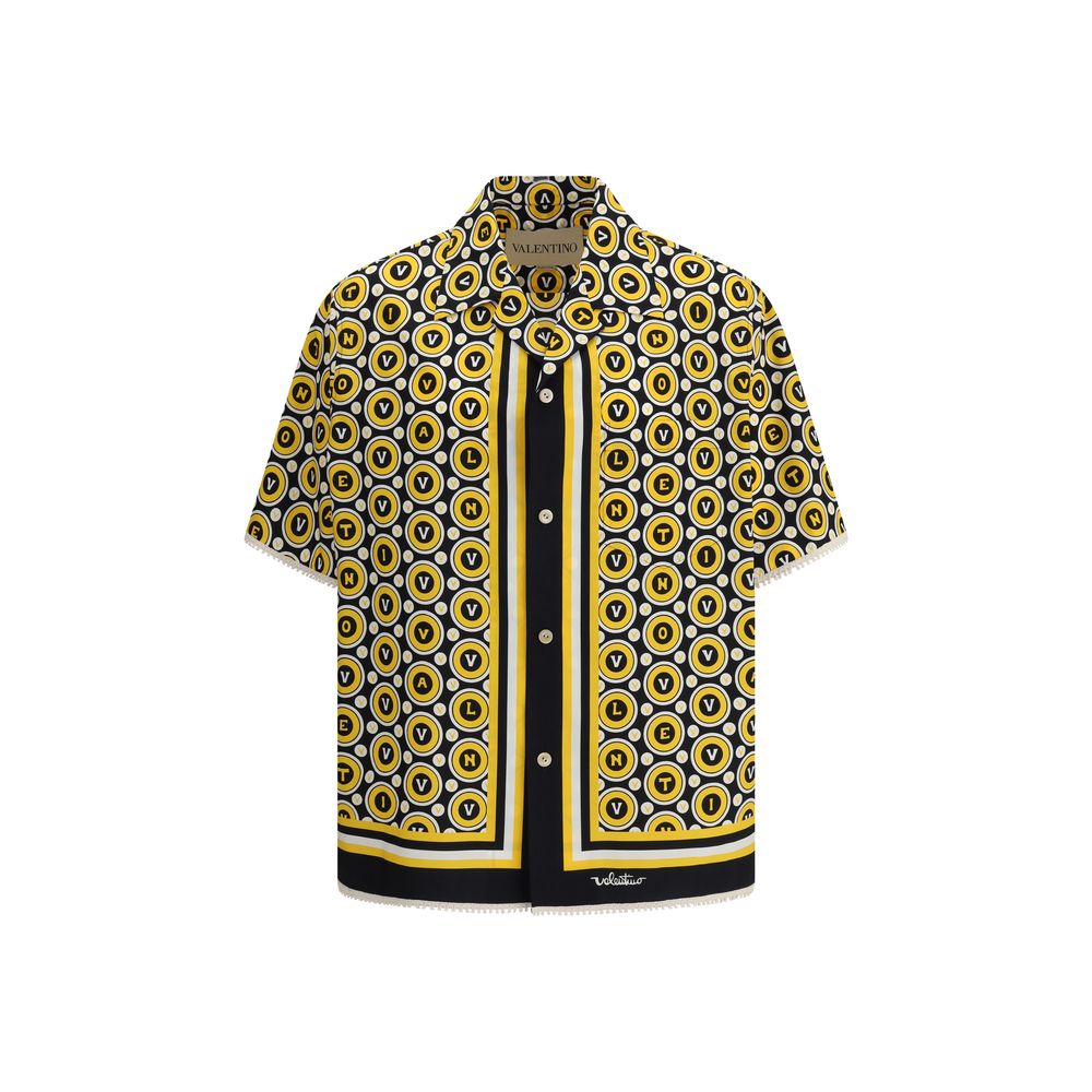 La camisa de bolos Cotton Bulles Royales de Valentino presenta un diseño refinado y relajado. Presenta cuello cubano, cierre de botones frontal y mangas cortas. Un bolsillo de ribete con apliques en la parte delantera le aporta funcionalidad, mientras que el bajo está adornado con un bordado de crochet que le da un toque artesanal y refinado.