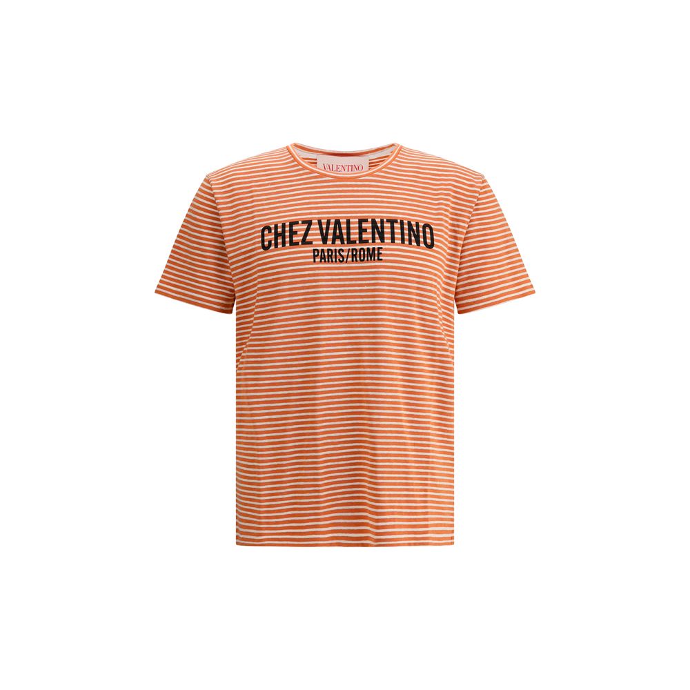 La camiseta de algodón de Valentino presenta un estampado de rayas bicolor que le da un aspecto moderno y dinámico. El icónico monograma de la marca, en contraste en la parte delantera, le aporta un toque distintivo y reconocible. Una prenda sencilla pero elegante, perfecta para un look casual y sofisticado a la vez.